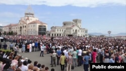 Гурген Нерсисян сообщил, что протестующие пройдут к степанакертскому отделению Красного Креста, а затем к месту дислокации российских миротворцев, чтобы «озвучить требование народа».