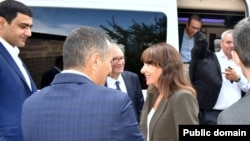 Еще до приезда в Корнидзор мэра Парижа в Горисе приветствовали губернатор Сюникской области Роберт Гукасян, министр иностранных дел Нагорного Карабаха Сергей Казарян и мэр Гориса Аруш Арушанян.