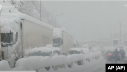Из-за сильного снегопада на дорогах Ларса заблокированы сотни армянских грузовиков